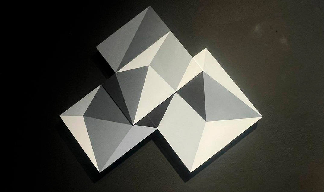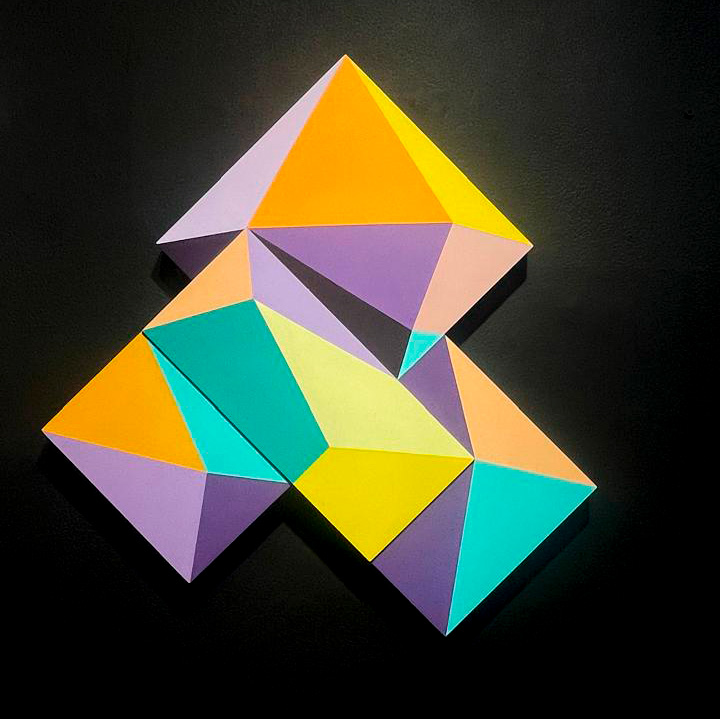 Partiendo de un estilo conocido como Hard Edge expresa un lenguaje geométrico abstracto, confiando en las composiciones del deconstructivismo y el surrealismo. Estas diversas sensaciones ópticas desencadenan interpretaciones únicas y muy personales en el espectador.