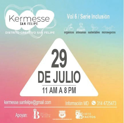 La KERMESSE San Felipe es una nueva experiencia de apoyo, difusión, educación y consumo consciente dirigido a la población bogotana. El concepto lo llevará a disfrutar de Mercados Campesinos, Moda consciente, Espacio Cultural, Galerías, Joyería, Librería, Gastro Bar, Panadería artesanal con productos locales de alta calidad en medio de actividades artísticas, charlas, juegos y talleres conscientes